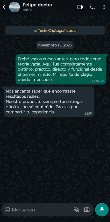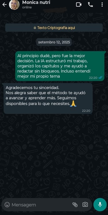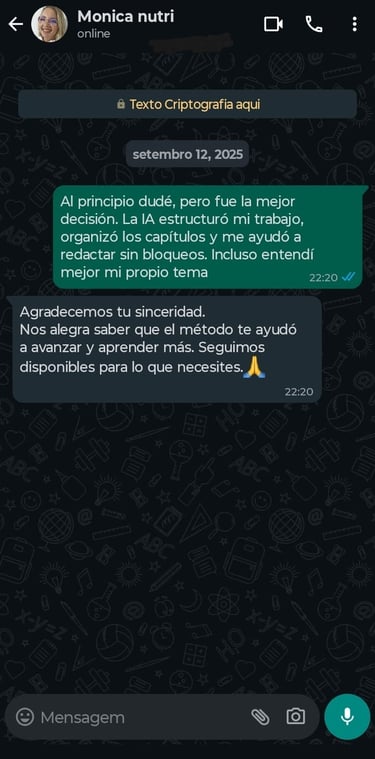 Después de comprobar los resultados en mi propia tesis, compartí el método con colegas que también estaban estancados. Lo que ocurrió fue sorprendente: terminaron su investigación y redacción en tiempo récord, con una calidad muy superior a lo que esperaban. Tras meses de pruebas, ajustes y validación, este conocimiento por fin está listo para ti. Y te adelanto algo: no es lo que ya conoces, no es lo que enseñan en las universidades… y, lo más importante, no existe en Latinoamérica.